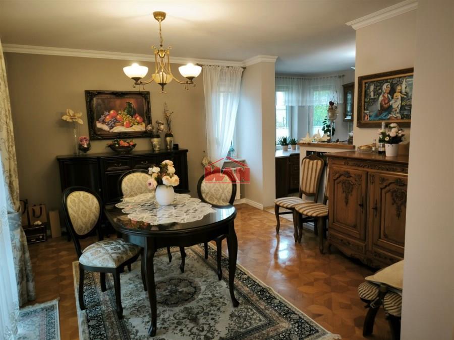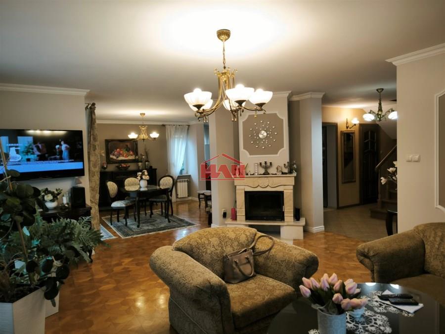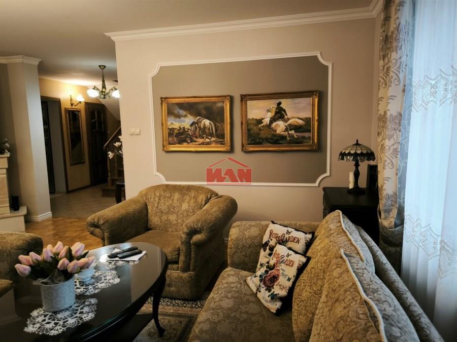 Atrakcyjne wnętrze domu wykończono z użyciem wysokiej klasy materiałów budowlanych. W pełni wyposażona kuchnia jest części połączona z pokojem jadalnym. Schody wiodące na I piętro do części sypialnej domu zrobione są z lakierowanego dębu. Przy projektowaniu przedmiotowej nieruchomości zastosowano wiele elementów zdobniczych, które nadają komfortowemu wnętrzu niezwykłej przytulności.