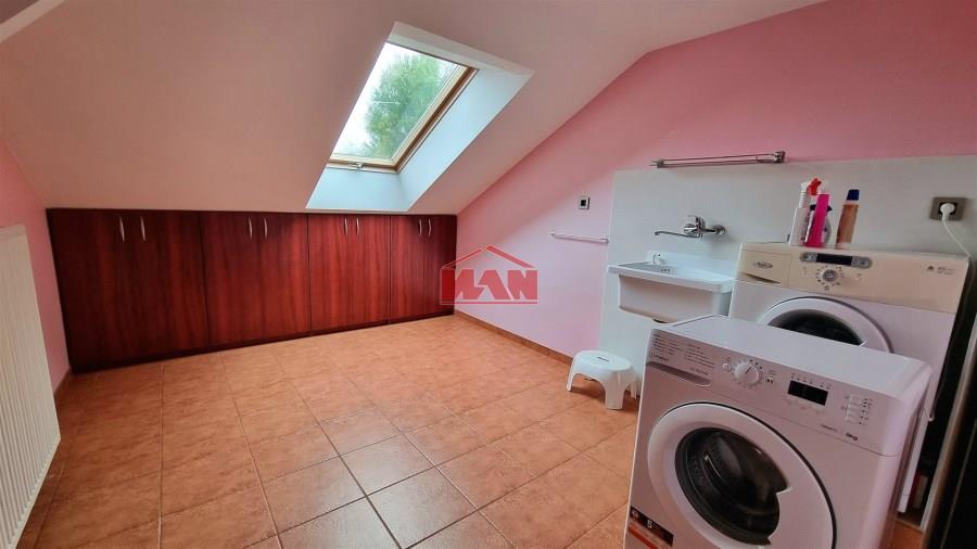 Na półpiętrze znajduje się mała sypialnia, wc oraz pralnia z suszarnią.